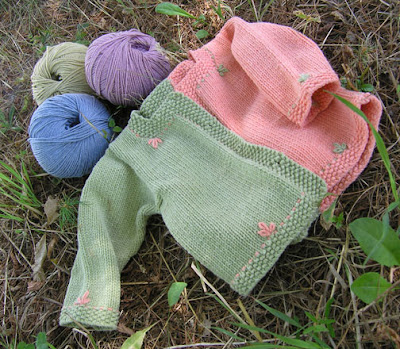 After we got the rep packets out the door, I took a bit of a break in Branson, MO. Perfect time to go there (early April). No crowds, pretty quiet, and the weather cooperated. But of course, I never leave home without tons of yarn and needles, and I came back with this cute jacket, named Waterlily 'cause it kinda looks like the famous painting. It's made of Wrapunzel in a new color called Foxgloves (not yet shown on the website) and Ty-Dy Wool. The pattern will be available shortly as it is a late addition to the aforementioned fall/winter collection.
