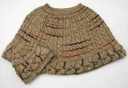 Ok, so back to the now called "Linus Capelet and Hat" set. I, not so originally, called it Linus because of the yarn it's made of (sometimes you put all your inspiration in the design and there ain't much left for the naming process, know what I mean?). Yes, I took it apart, down to the large cable band, and it really wanted to stay a capelet (minus the buttonband idea), or mini poncho, whatever you want to call it. Capelet sounds a bit like some medieval garment, and not exactly something fashionable...but it's probably just me.